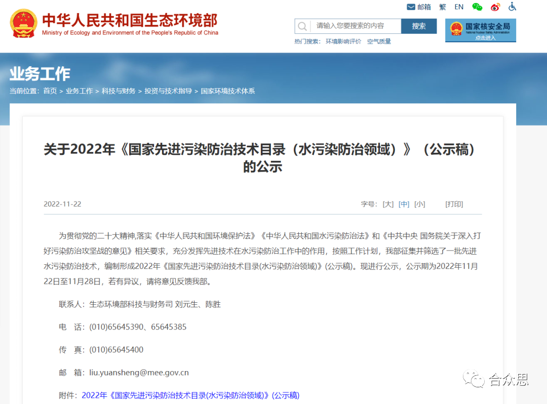 The 2022 "National Advanced Pollution Control Technology Catalog (Water Pollution Control Field)" is to implement the requirements of the "Environmental Protection Law of the People's Republic of China", the "Water Pollution Prevention and Control Law of the People's Republic of China", and the "Opinions of the Central Committee of the Communist Party of China and the State Council on Deepening the Fight against Pollution", giving full play to the role of advanced technologies in water pollution control. It is a catalog of pollution control technologies with advanced technical level, significant environmental benefits, and economic feasibility, launched by the Ministry of Ecology and Environment based on the key and hot areas of environmental pollution control. It represents mature technologies that have been proven in engineering practice and are encouraged for promotion and application.